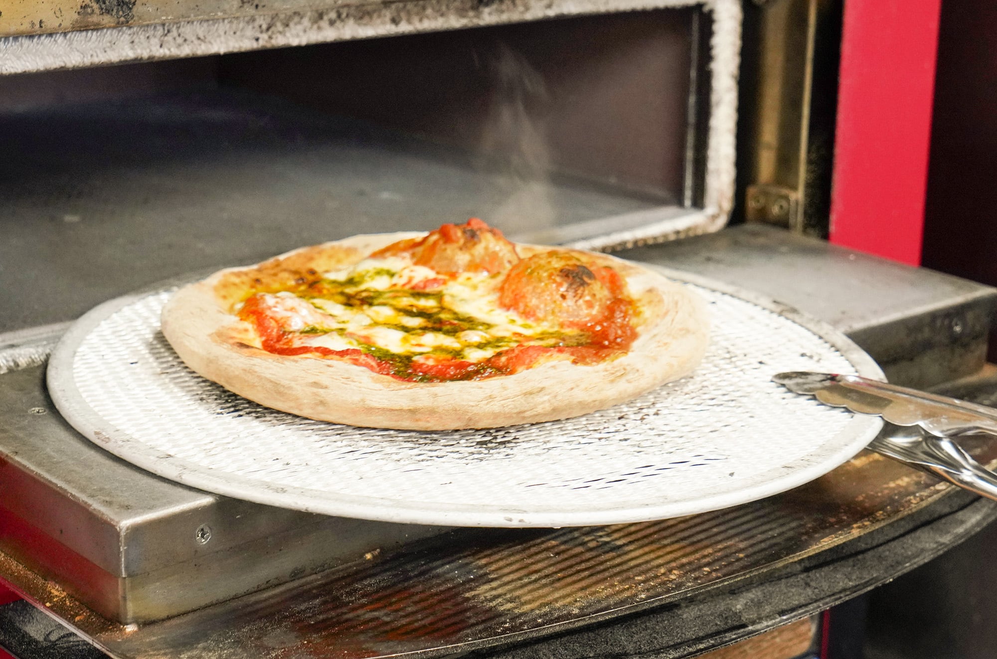 イタリアのピザ専用粉「サッコロッソ」の生地のピザを500℃の石窯で焼いた本格ピザです。
