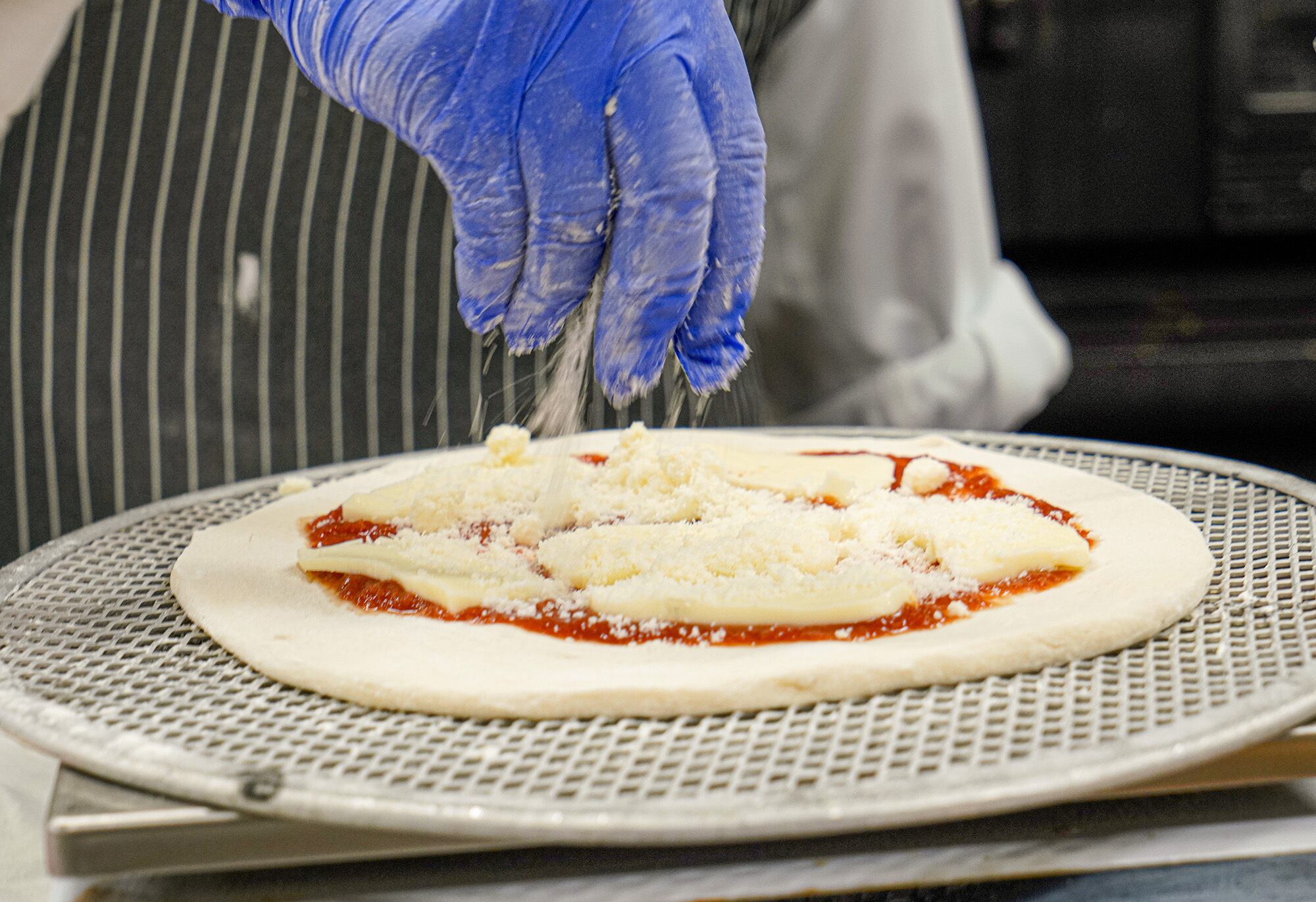 フライパンで温めると焼きたての美味しさになります。(ピザには切り込みがあるので必要な分だけ温めて召しあがれます。)